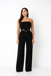 Conjunto com Cropped Tomara que Caia e Calça Pantalona Alfaiataria - Leon Elegance