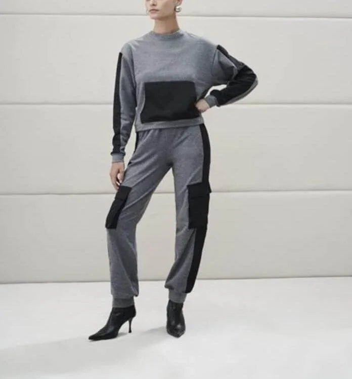 Conjunto Tufi Duek Moletom Cinza com Recortes Pretos - Leon Elegance