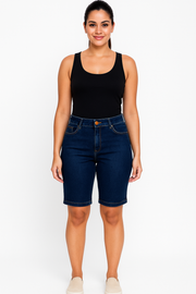 Bermuda Jeans Feminina Cintura Alta KLEPTON - 46 / Az Escuro
