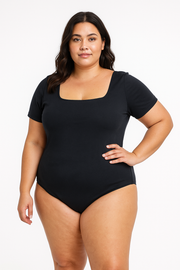 Body plus size preto básico confeccionado em tecido com elastano, garantindo conforto e ajuste perfeito. Possui decote quadrado e mangas curtas que valorizam o colo de forma moderna. Uma peça prática e versátil, ideal para compor looks casuais ou elegantes com estilo.