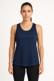 Regata feminina K2B azul marinho confeccionada em tecido leve e respirável, oferecendo conforto e liberdade de movimentos. Modelagem regular com cava ampla, ideal para treinos, caminhadas e uso casual no dia a dia, unindo versatilidade e estilo moderno.