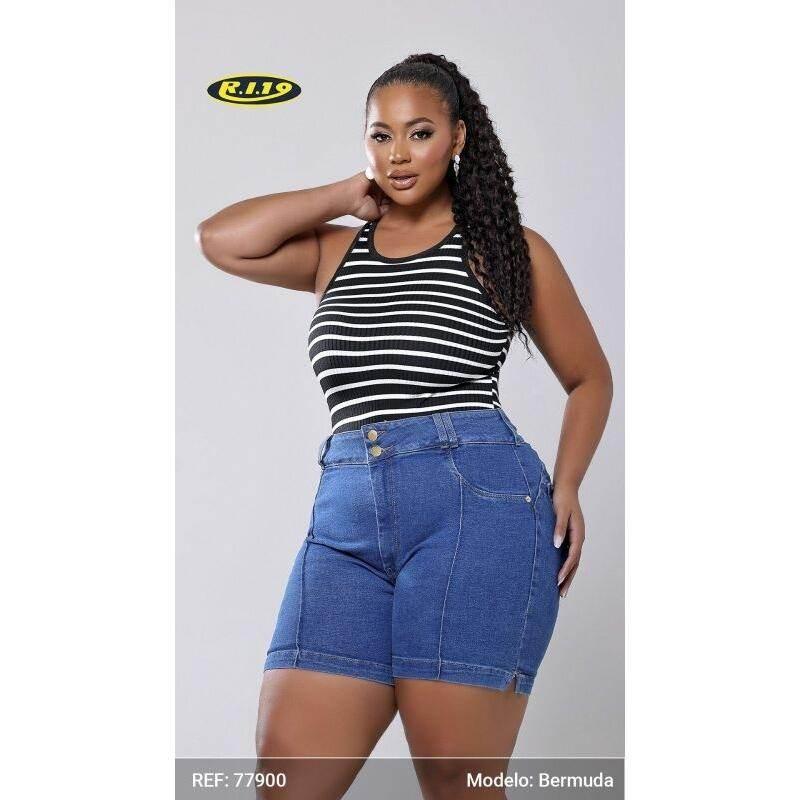 Bermuda Jeans Cintura Alta Plus r19 - Leon Elegance