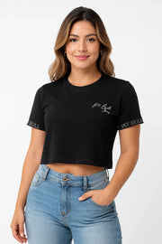 Camiseta feminina Pit Bull Jeans confeccionada em malha macia, com modelagem levemente solta e logo bordado no peito. Possui mangas curtas com detalhe personalizado em strass da marca, garantindo estilo e autenticidade. Ideal para composições casuais modernas e confortáveis.