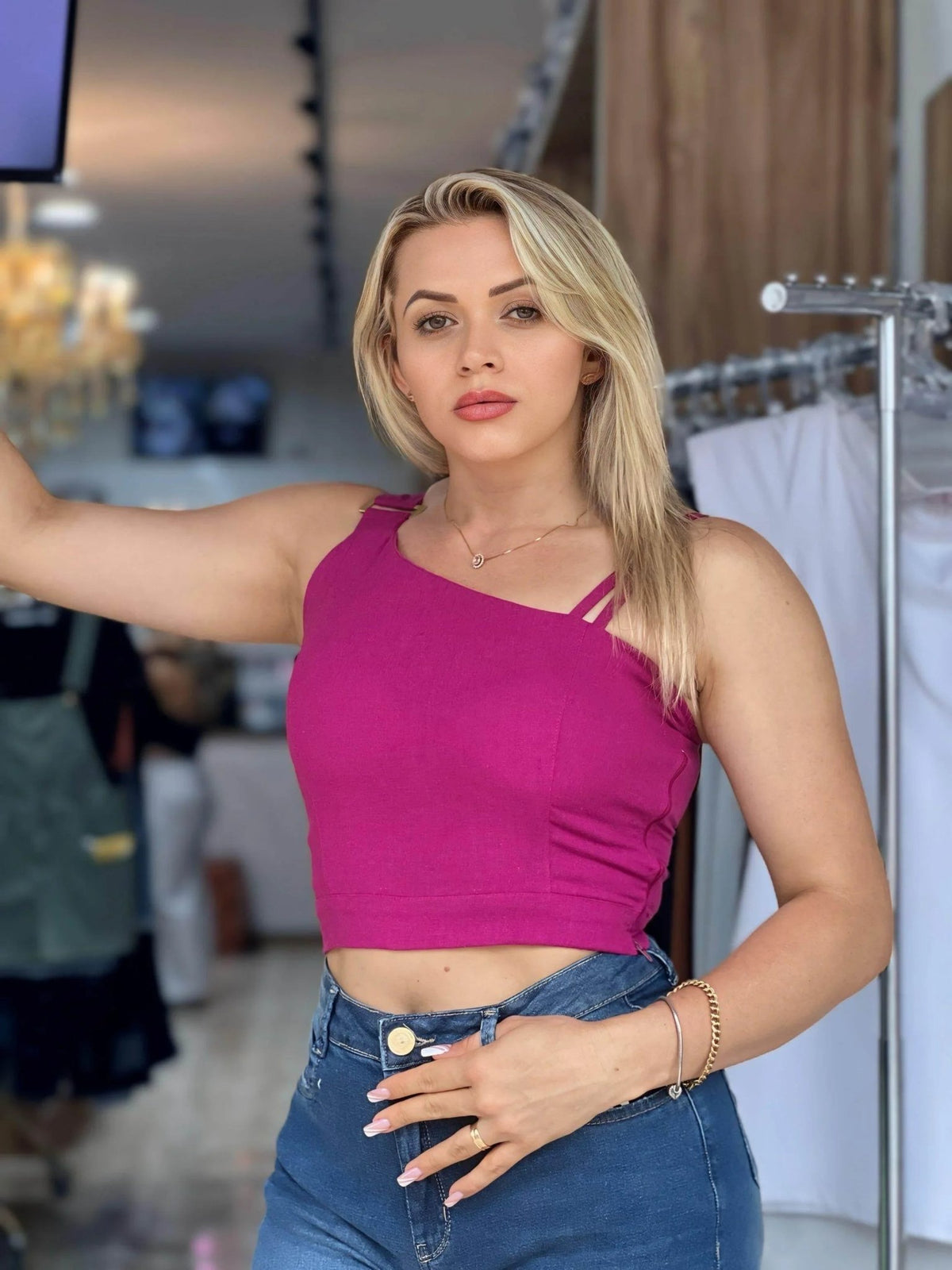 Cropped Fame em Linho Fivela Hook Leon - P / Pink