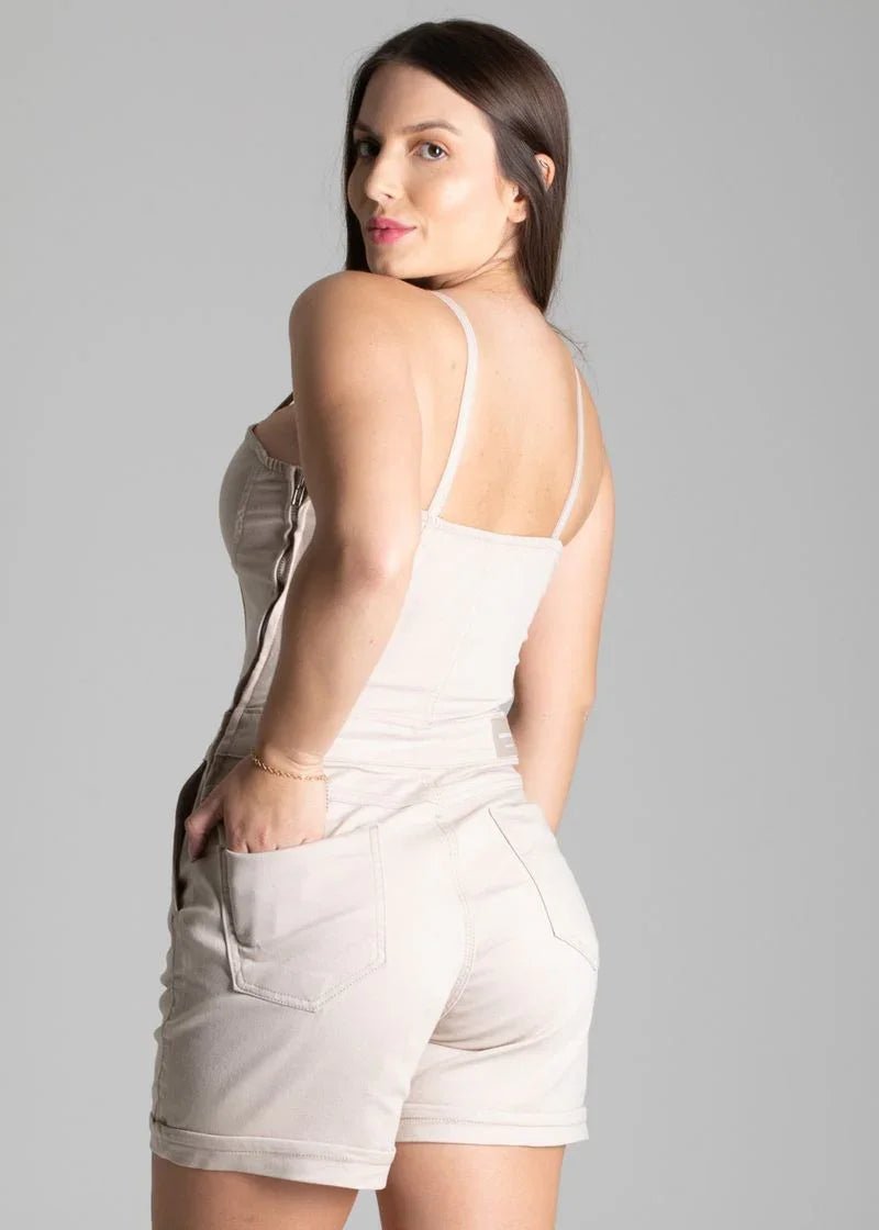 Com a Jardineira Sarja Leon, você tem estilo e conforto em uma só peça. Confeccionada em sarja com caimento soltinho e comprimento curto, essa jardineira possui fechamento com ziper lateral, bolsos traseiros funcionais e alças finas. Com acabamento simples e cor bege, é a opção perfeita para uma produção casual e moderna.