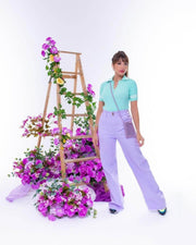 Calça Plus Wide Leg de Sarja Elástico na Cintura Leon - 44 / Roxo