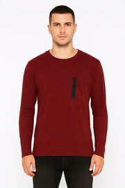 Camiseta Manga Longa Vinho com Bolso Zíper Masculina - Leon Elegance