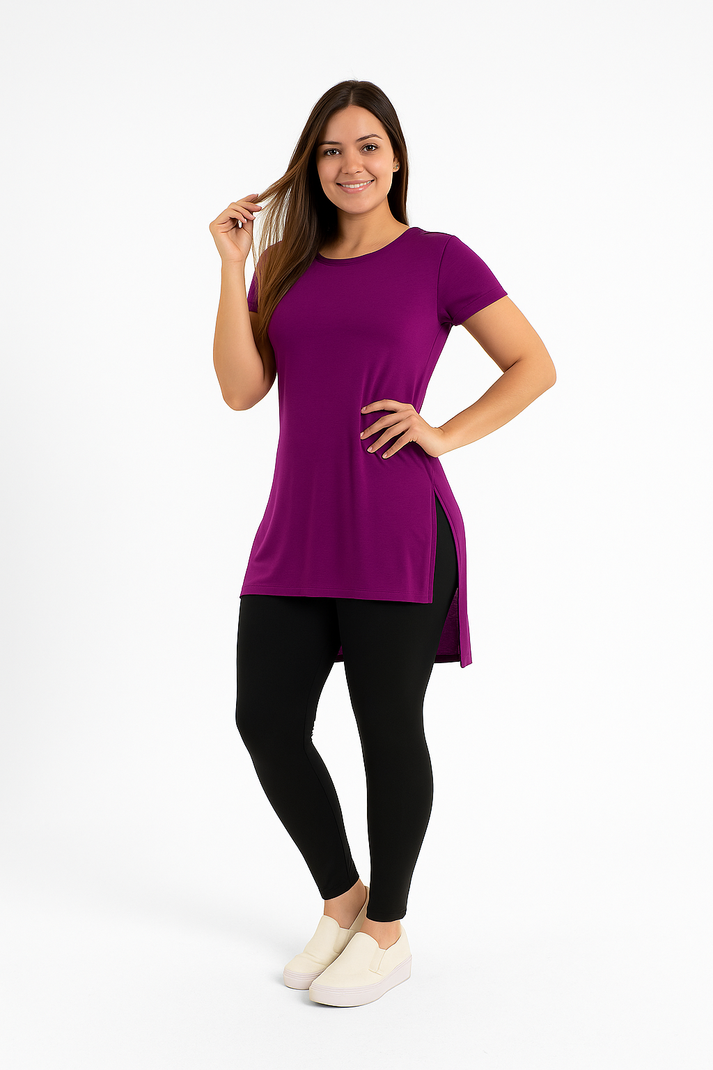 Veste Leg K2B feminina alongada, com manga curta e gola redonda. Modelagem estendida que garante cobertura e conforto, perfeita para combinar com legging. Versátil e prática, é ideal para o dia a dia, academia ou momentos de lazer, oferecendo estilo moderno e casual.